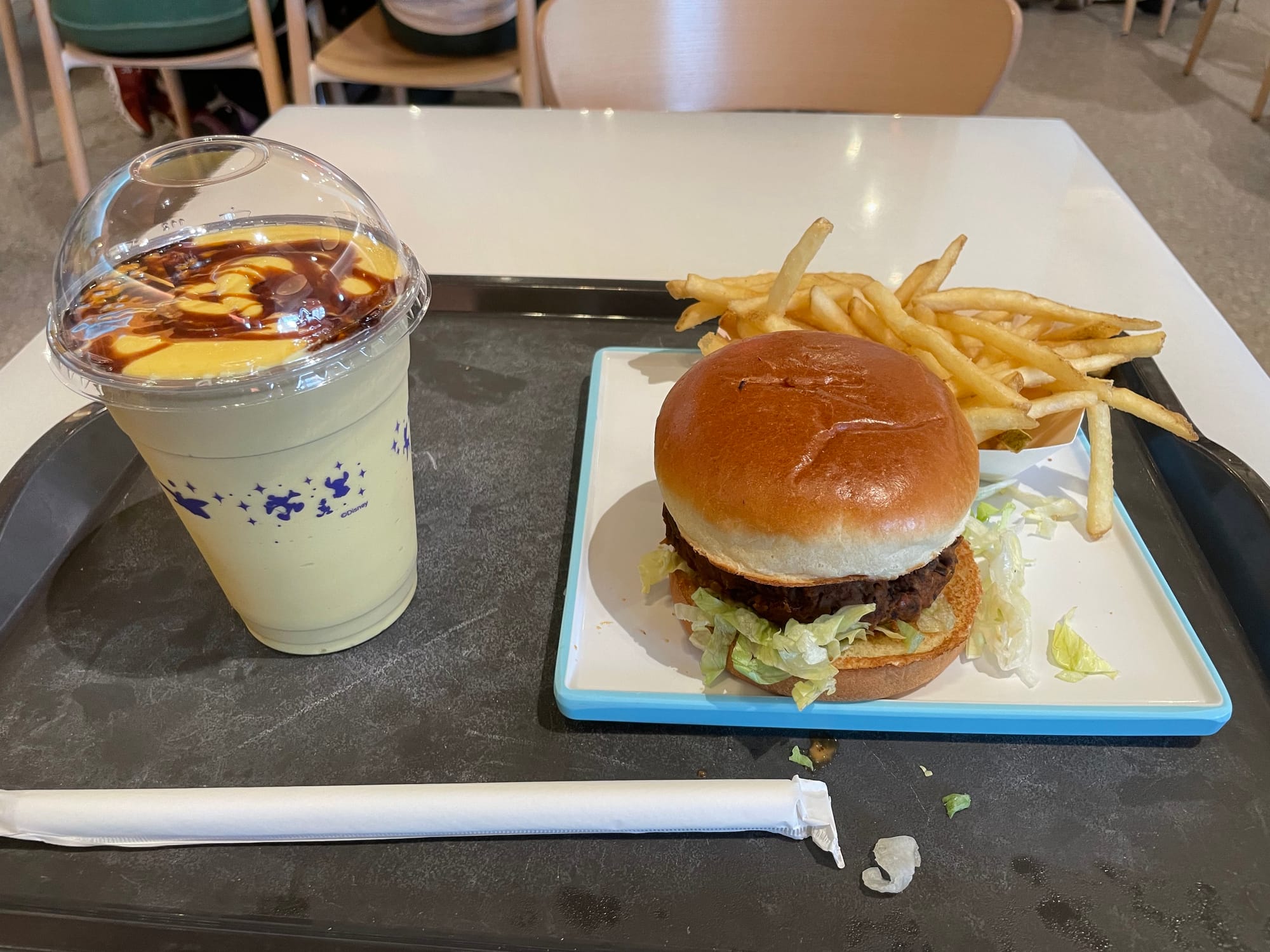Once I stepped off the ride, I mobile-ordered the black bean burger and the mango-coconut plant-based shake at Connections Eatery. The burger was decent, although I was starting to get tired of having fries as my side. The shake was also decent. Mango and coconut are not my favorite flavors in a smoothie, but I bought it because it is plant-based, and I wanted to try it. I wouldn't return to Connections Eatery for this meal, but I would order both again if my family wanted to eat here.